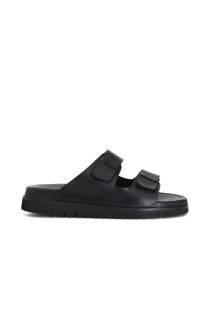 Zapatillas de piel con doble hebilla.