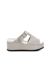 Zapatillas de piel con hebilla en cuña forrada de piel y cómodo lecho del pie.