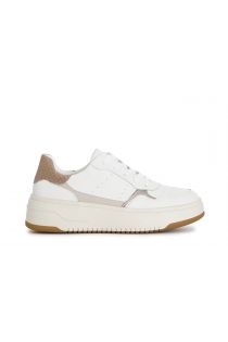 Zapatillas deportivas para mujer en piel revestida con inserciones laminadas. la plantilla es de piel.