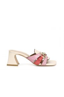 Chanclas bicolor de piel y ante con horsebit. tacón h. 70 mm