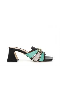 Chanclas bicolor de piel y ante con horsebit. tacón h. 70 mm
