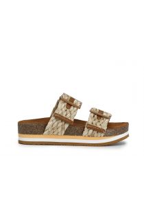 zapatillas de rafia tejida con doble hebilla tan
