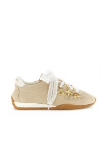 Zapatillas de running con cordones para mujer en ante perforado. cordones y adornos dorados extraíbles de temática náutica. forro de tela plantilla de cuero y suela de goma de 2 cm. un look alegre y ultraglamuroso.