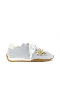 Zapatillas de running con cordones para mujer en ante perforado. cordones y adornos dorados extraíbles de temática náutica. forro de tela plantilla de cuero y suela de goma de 2 cm. un look alegre y ultraglamuroso.