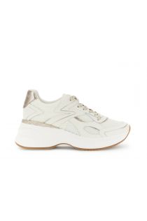 Zapatillas de running con cordones para mujer en malla y piel revestida con detalles de purpurina. forro de tela plantilla de piel y suela de 5.5 cm. perfectas para un look deportivo y luminoso con la máxima comodidad.