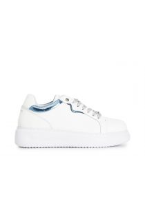 Zapatillas deportivas adornadas con una inserción laminada especial de color turquesa. pala y plantilla de piel. cierre con cordones. suela tipo caja.