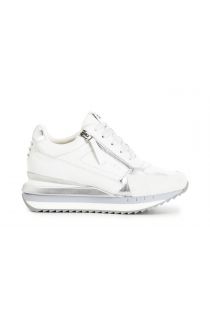 zapatillas deportivas con cordones y cremallera lateral sobre cuña bicolor white/silver