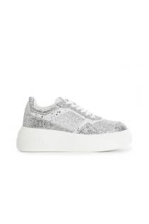 Zapatillas deportivas adornadas con un estampado de apliques de glitter. cierre con cordones. suela de 55 mm de altura.