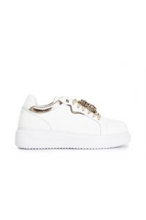Zapatillas deportivas adornadas con un ribete laminado especial y accesorios joya extraíbles. pala y plantilla de piel. cierre con cordones. suela tipo caja.