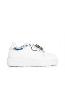 Zapatillas deportivas adornadas con un ribete laminado especial y accesorios joya extraíbles. pala y plantilla de piel. cierre con cordones. suela tipo caja.