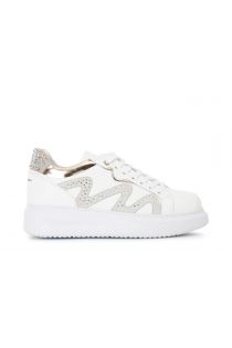 Zapatillas deportivas adornadas con tachuelas en el detalle lateral y pedrería en la puntera. pala y plantilla de piel. cierre con cordones. suela tipo caja.