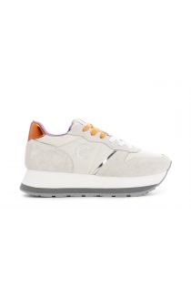 Deportivas con cordones para mujer en ante y tejido. logotipo lateral plateado con monograma cafènoir. altura de la suela 30 mm. plantilla interna.