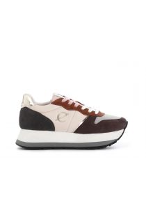 Deportivas con cordones para mujer en ante y tejido. logotipo lateral plateado con monograma cafènoir. altura de la suela 30 mm. plantilla interna.
