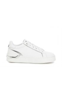 Zapatillas deportivas de piel animalier con accesorio metálico que adorna el cierre y suela tipo caja con inserción metalizada.
