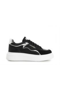 zapatillas deportivas de piel con detalle de espejo con suela de caja black/silver