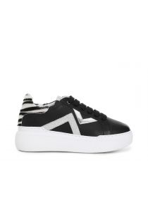 Zapatillas deportivas total white de piel con detalles de piel de potro moteado en la parte posterior