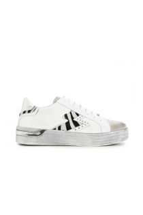 Zapatillas deportivas de piel con suela de efecto vintage. la pala de piel se enriquece con inserciones de tejido con glitter o detalles de animales según la variante de color