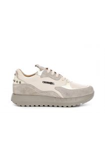 Zapatillas deportivas de piel con tachuelas que pespuntean la pala, logotipo metálico colocado en la lengüeta y suela running de estructura ligera y dinámica.