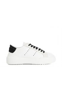 Zapatillas deportivas en piel sintética para mujer. cuello y cordones de colores.
