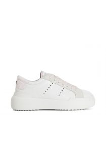 Zapatillas deportivas en piel sintética para mujer. cuello y cordones de colores.