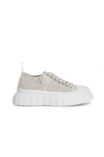 Zapatillas deportivas tejido deshilachado con cordones. puntera de goma. cierre con cordones a juego con el zapato. suela elevada de 55 mm decorada con un motivo de rayas.