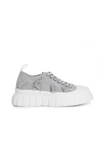 Zapatillas deportivas tejido deshilachado con cordones. puntera de goma. cierre con cordones a juego con el zapato. suela elevada de 55 mm decorada con un motivo de rayas.