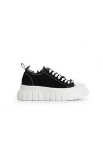 zapatillas deportivas de tejido deshilachado con pespuntes en contraste black/white