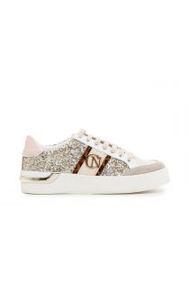 Nuevas zapatillas deportivas con suela tipo caja y apliques efecto metálico. La pala está realizada en tejido glitter y con una banda lateral con monograma CafèNoir metálico. En una palabra: espectacular!