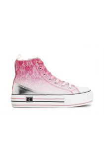 zapatillas deportivas mid de encaje degradé con cordones degradados hot pink