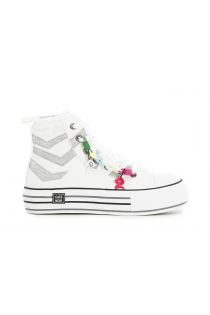 Zapatillas deportivas mid de tela y glitter enriquecidas con un colorido accesorio extraíble.