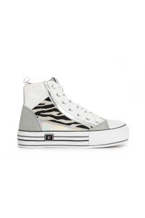 zapatillas deportivas mid patchwork con efecto cebra white combo