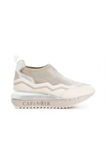 Zapatillas deportivas slip-on de piel y tejido lúrex suela de running con inserción y logotipo. la parte de piel está asociada al tejido mediante un delicado juego de zigzags delicadamente acabados.