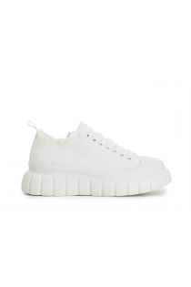 Zapatillas deportivas con cordones en tejido deshilachado suela en relieve decorada con un motivo de rayas. modelo que se distingue por una puntera de goma que decora el zapato.