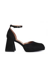 Zapatos de salón de ante y cinturón en el tobillo. tacón y plataforma de 85 mm. la plantilla es de piel. comodidad y elegancia al mismo tiempo y un carácter único adecuado para cada atuendo.