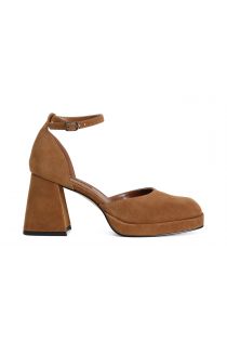 Zapatos de salón de ante y cinturón en el tobillo. tacón y plataforma de 85 mm. la plantilla es de piel. comodidad y elegancia al mismo tiempo y un carácter único adecuado para cada atuendo.
