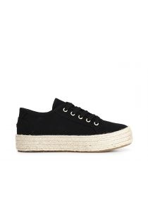 zapato de mujer con cordones de tela y forrada de esparto black