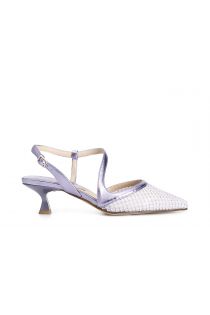 zapato de salón abierto por detrás modelo asimétrico de red con pedrería en la parte delantera lilac