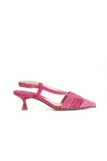 zapato de salón con dos bandas de piel de ante y tira en la parte trasera hot pink
