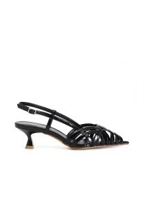 zapato de salón con tira por detrás de la pala en jaula efecto charol black