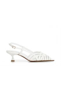 zapato de salón con tira por detrás de la pala en jaula efecto charol ivory
