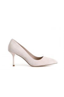 Zapato de salón de ante. plantilla de piel. tacón de aguja de 85 mm de altura.