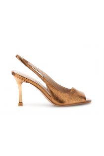 Elegantes zapatos destalonados de punta abierta en piel laminada con un fino tacón de 8.5 cm y un perfil estilizado. forro y plantilla de piel. suaves al tacto e increíblemente brillantes aportan un toque de glamour a cualquier look tanto de día como de noche.