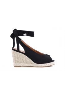 Zapatos abiertos con lazo estilo esclava de lona en cuña de esparto