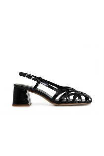 Zapatos abiertos de charol con jaula trenzada asimétrica. calzado con forma redondeada. lazo en la parte posterior. tacón de 45 mm de altura. muy cómodo perfecto para el día a día.