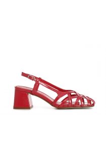 Zapatos abiertos de charol con jaula trenzada asimétrica. calzado con forma redondeada. lazo en la parte posterior. tacón de 45 mm de altura. muy cómodo perfecto para el día a día.