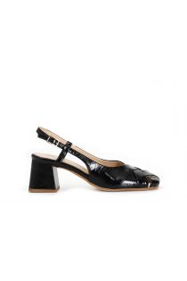 Zapatos abiertos por detrás de charol con pala trenzada. tacón de 5 cm con tira de piel