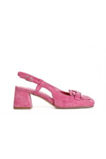 zapatos abiertos traseros de piel de ante con horsebit hot pink