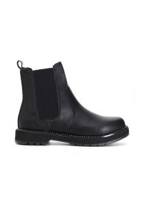 Zapatos beatles de piel sintética con detalles de pedrería y vira de adorno.