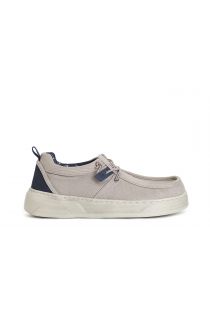 Zapatos de hombre con cordones y bandeja de tela. la plantilla es de piel. la suela es alta h. 3 cm. este zapato garantiza comodidad y sujeción al caminar el modelo combina sobriamente comodidad y estilo.