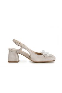 zapatos de ante abiertos por detrás con un horsebit transparente beige